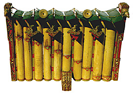 Pronounced ("ghen-dair"), is a tuned metallophone from Bali, Indonesia. The
